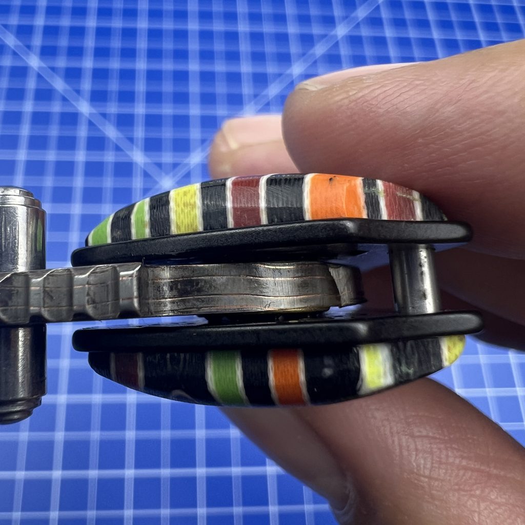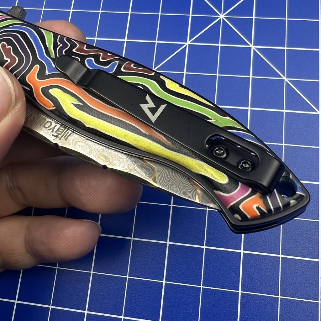 The handle utilizes a Colorful G10 Cover. G10 is an industry-standard, high-pressure fiberglass laminate, renowned worldwide for being entirely impervious to extreme temperature swings, moisture, and chemical degradation. While standard tactical gear relies on boring, monolithic black G10, this colorful variant is vibrant and multi-layered.