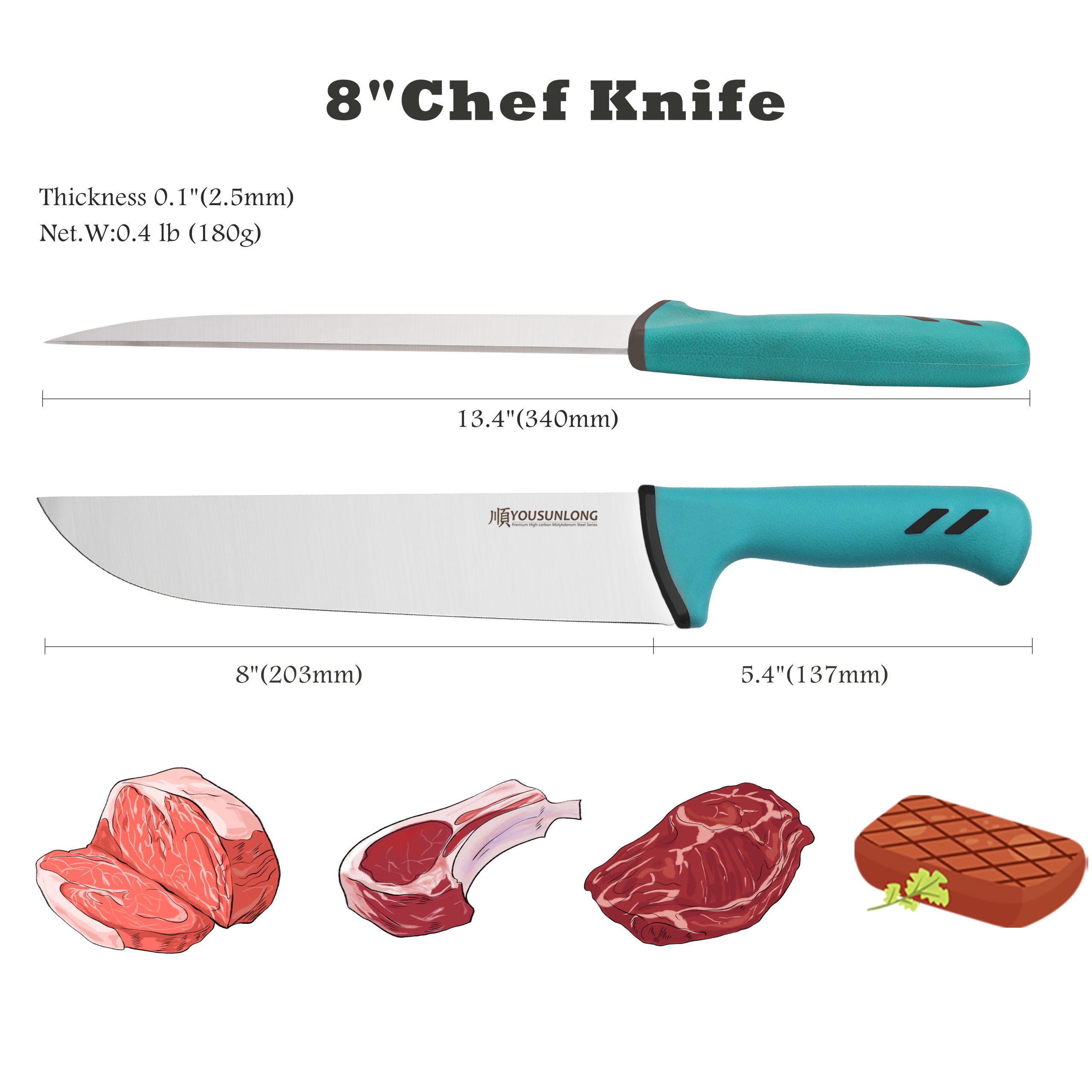 - The blade is relatively wide, the blade is flat and straight, and it can also be used for home cutting of meat and vegetables.