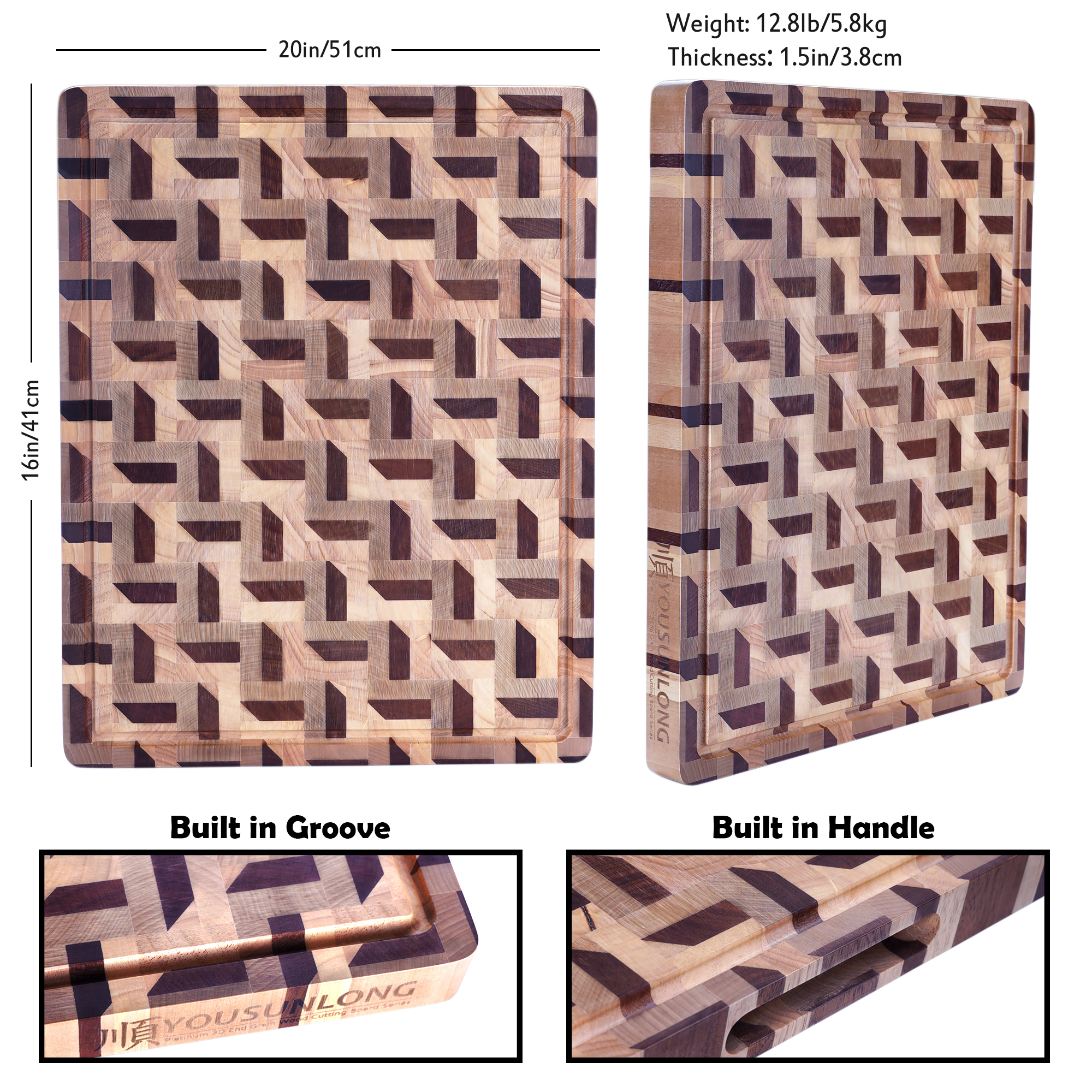 Experience the unparalleled beauty and durability of our 3D Patterned End Grain Maple cutting board. Each board is not just a kitchen tool, but a unique piece of craftsmanship, where deep wood grain creates a mesmerizing three-dimensional visual that enhances any culinary space.