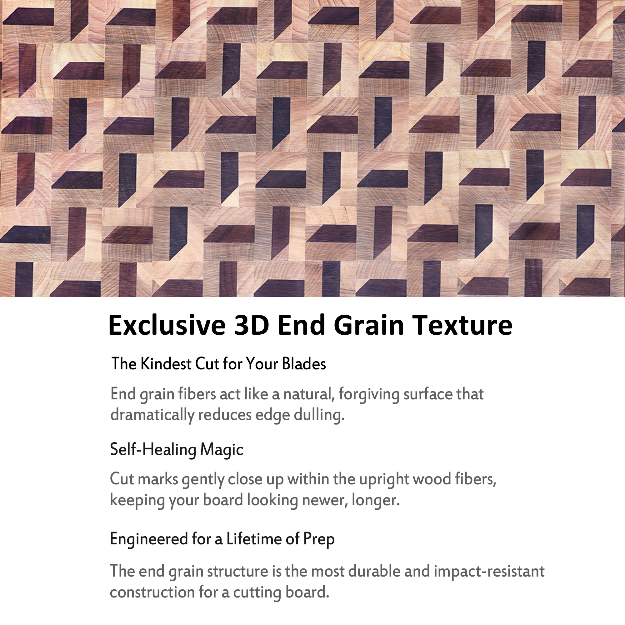 End grain dramatically reduces edge dulling, preserving knife sharpness longer.
